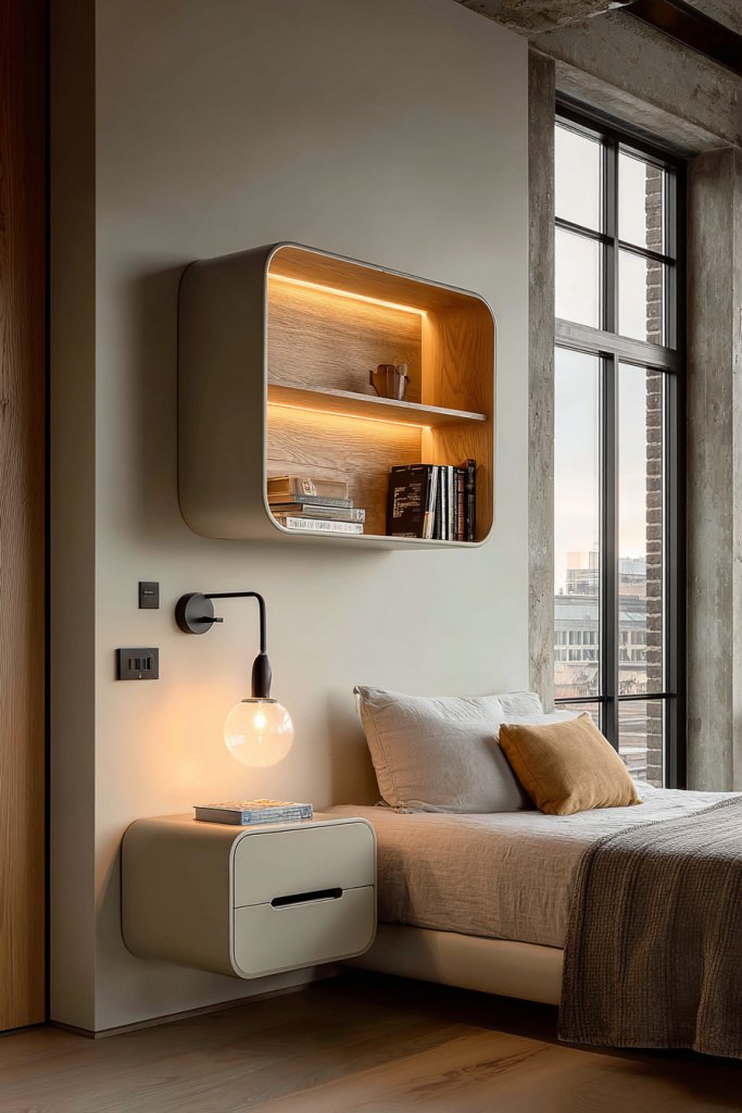 22. Install Floating Nightstands or Small Wall-Mounted Desks for Space-Saving Convenience
