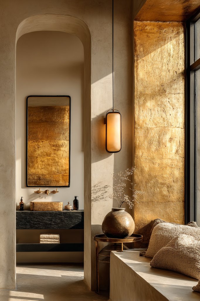 23. Use Warm Metallic Accents in Fixtures and Decor Elements