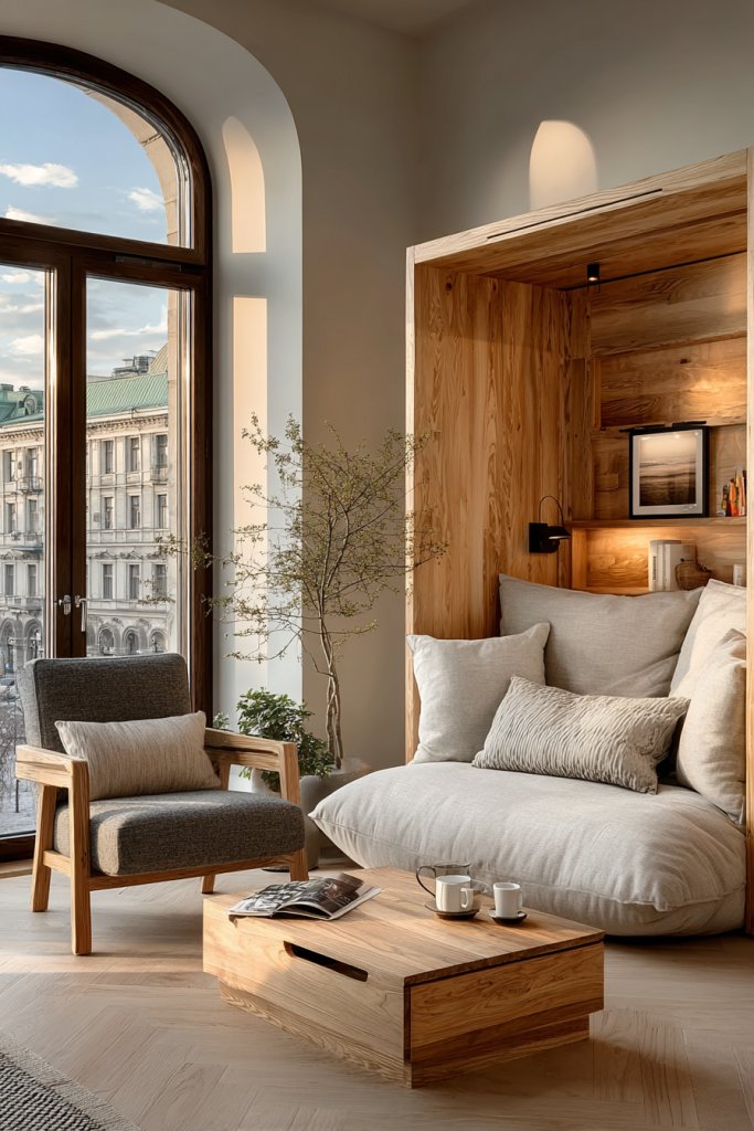 Imagine a sleek ottoman with hidden storage inside, perfect for stashing blankets or books, while doubling as extra seating. Picture a fold-out sofa that transforms from a sleek daybed into a full-sized sleeping area in seconds. A bed with built-in drawers or a Murphy bed that folds into the wall creates open space during the day, making your apartment feel larger. These pieces blend seamlessly into your decor, offering both comfort and practicality without sacrificing style.