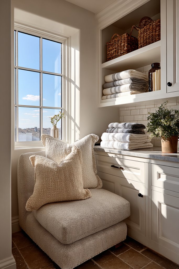 A cozy seating nook turns a mundane laundry space into a mini retreat. It’s a small change that promotes comfort and makes chores feel less like a burden. Once you create a dedicated spot to sit, you might even look forward to folding or sorting—seriously!