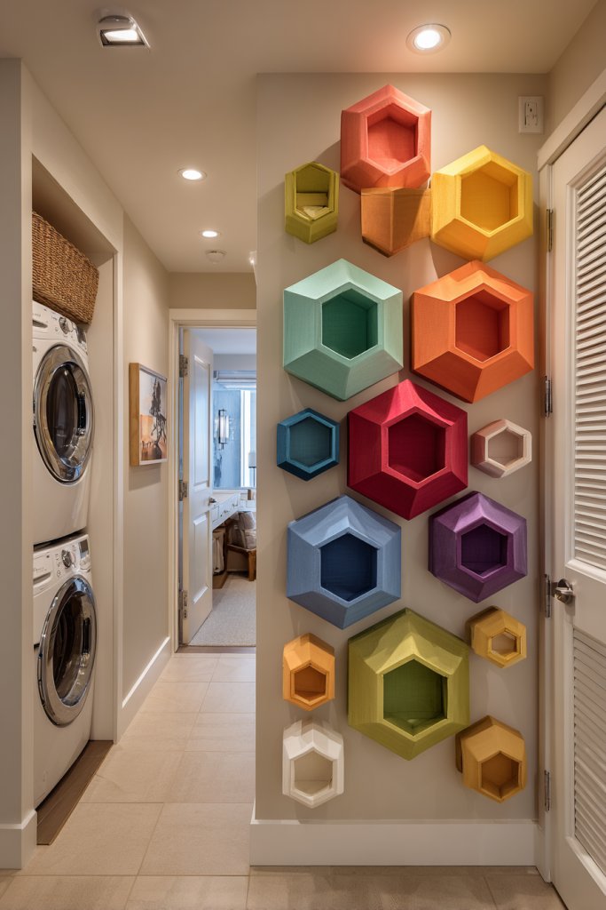 Imagine a set of stackable, cube-shaped units made of plastic, wood, or metal, arranged to fit your layout perfectly. Each module can serve as a bin, shelf, or drawer—whatever best suits your needs. When filled with detergents, fabric softeners, or folded clothes, the units create a tidy, geometric aesthetic. Their modular nature allows you to reconfigure as your storage needs evolve.