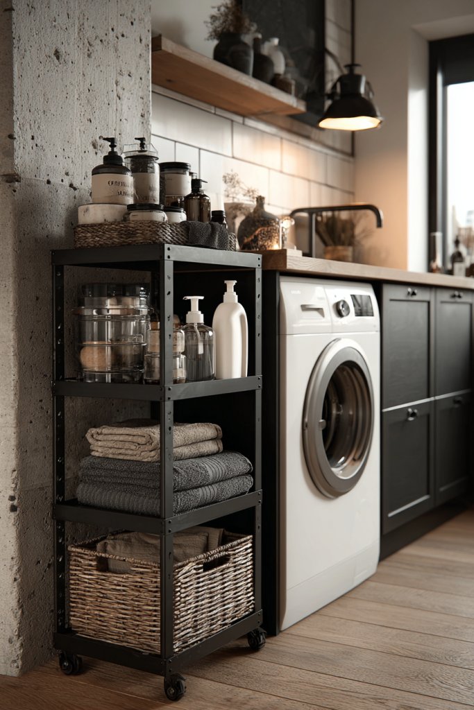 Ever wish you had extra storage that moves with you? Small laundry rooms often lack space for bulky cabinets, but a slim rolling cart can be your secret weapon. It’s perfect for storing cleaning supplies, linens, or even laundry essentials that need to be easily accessible. Plus, the mobility means you can move it to where you need it most—no heavy lifting required.