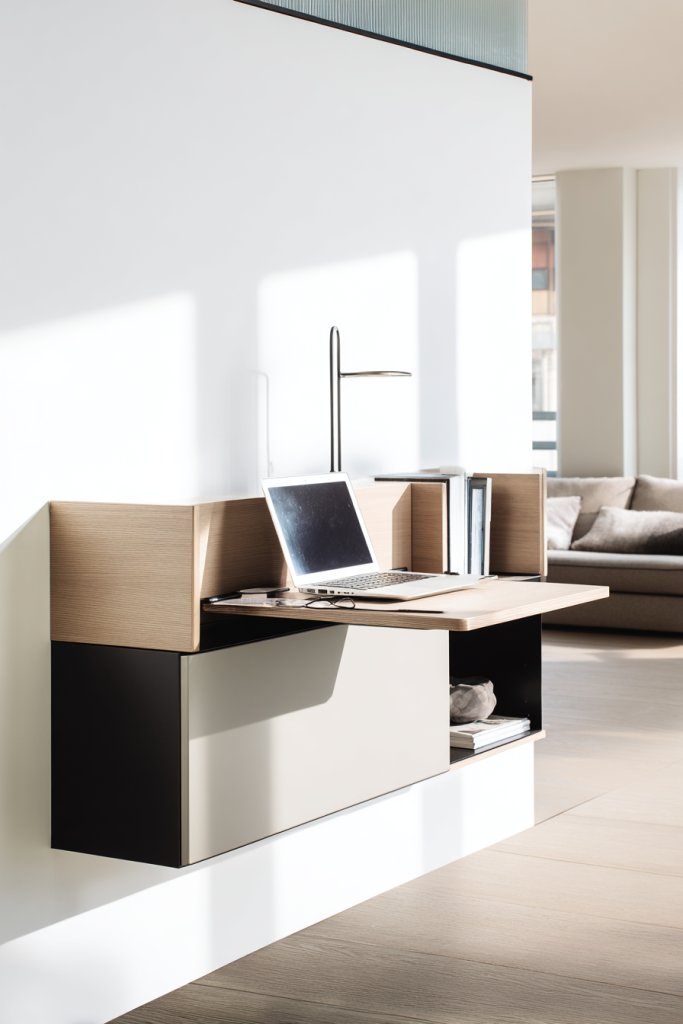 Opt for a minimalist style with clean lines and neutral tones, or choose a more vibrant look with bold colors. Use adjustable shelving and storage solutions to keep work essentials tidy. This setup adapts well to small apartments or open-plan living areas. Seasonal or decorative accents can make the workspace inviting.