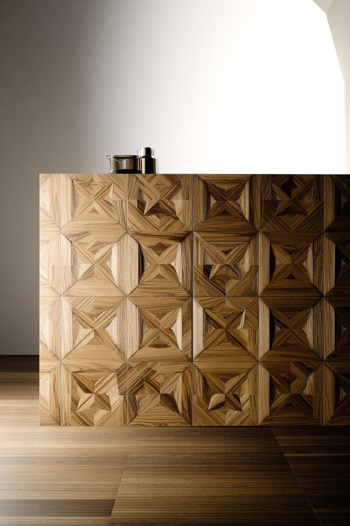 16. Parquet Patterned Console for Textural Appeal