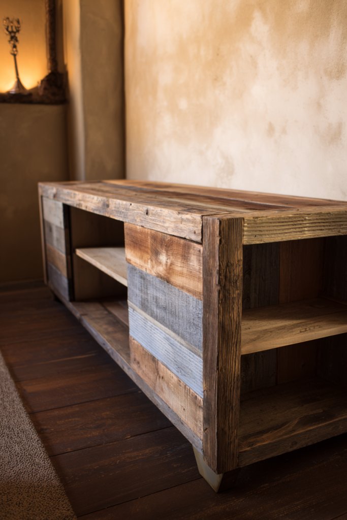 2. Reclaimed Wood Vintage-Inspired TV Stand