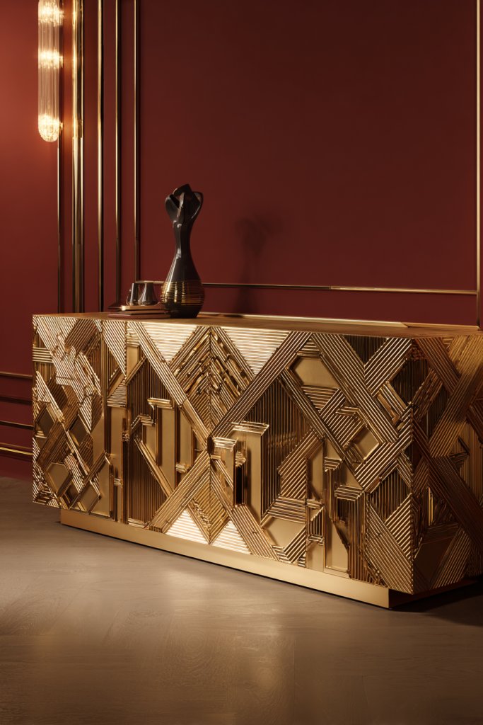 20. Art Deco-Inspired Console with Bold Geometric Details
