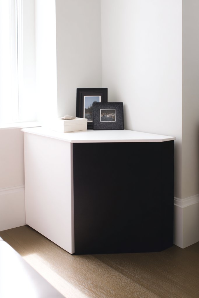 Choose a console with a sturdy frame and a finish that clearly separates the two colors. Use painter’s tape or masking to achieve sharp lines if painting or customizing. When selecting ready-made options, verify the color contrast is high enough to make an impact. Make sure the furniture’s proportions suit your space.