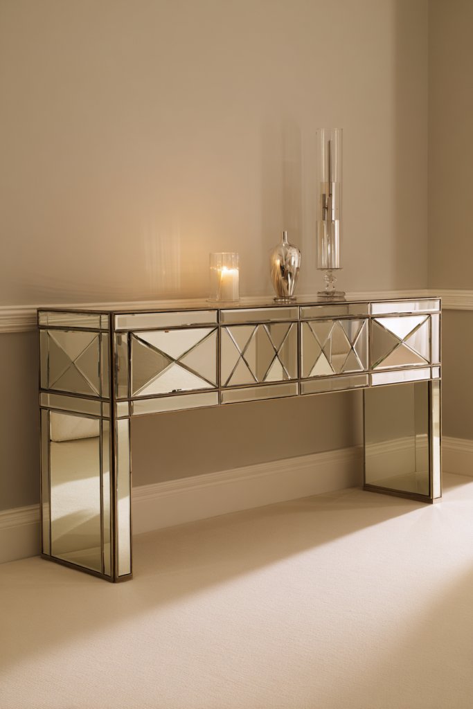 9. Mirrored Facade Console for a Glamorous Look
