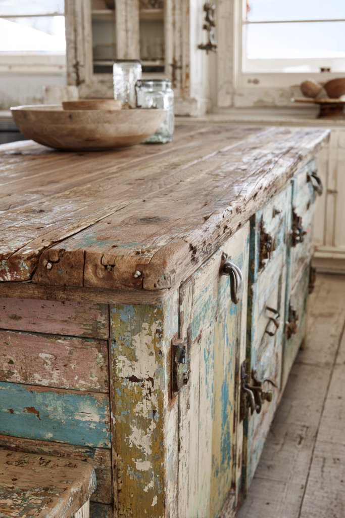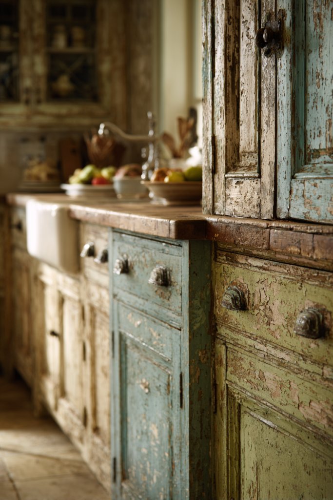 6. Distressed Painted Cabinets for a Worn-In Look