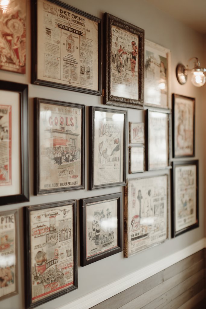 Source vintage or reproduction prints from antique shops, online stores, or print shops. Frame using reclaimed or distressed wood for a cohesive look. Mount securely on your wall, ensuring they’re level and spaced evenly. Protect delicate paper with UV-resistant glass or acrylic. Regularly clean and rotate displays to keep the collection fresh.