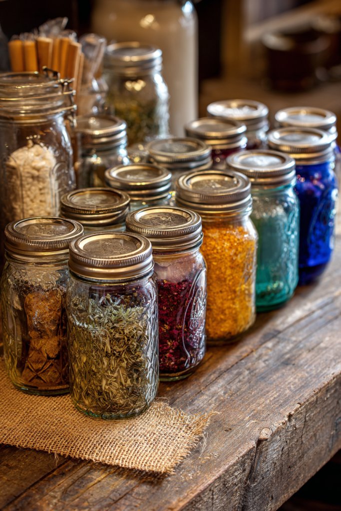 Use jars of different sizes for various purposes—small for spices, large for drinks, or for storing utensils. Decorate with twine, fabric covers, or vintage labels for a personalized touch. Coordinate with other rustic accessories like wooden trays or antique silverware. Seasonal themes, such as holiday-themed jars or summer drinks, keep the display fresh.