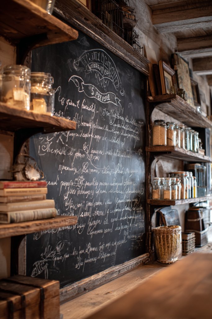 Looking for a versatile way to add personality and functionality? A chalkboard wall or menu board offers a charming vintage touch that’s perfect for jotting down notes, recipes, or daily specials. It’s an interactive feature that keeps your kitchen lively and organized. Plus, it’s a fun DIY project that adds character.